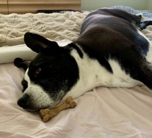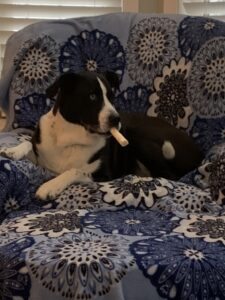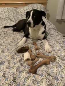 If you’ve ever wondered what a “treasure hoarder” looks like in dog form, meet Spice. On any given day, my bed was covered in a mountain of dog bones, horse hooves, and chew treats. All of which she had meticulously gathered, carried, and carefully arranged around herself. Featured here is a perfect example: Spice, lying proudly amid her bounty, guarding every single piece with the seriousness of a royal queen protecting her crown jewels. Her dedication was hilarious, but also… surprisingly profound.
