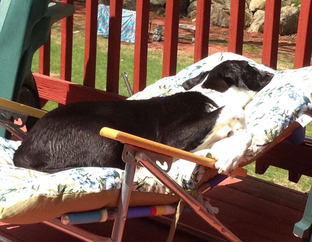 No matter her age, Spice always found her way to the light. There’s a photo of her sprawled out in a beach chair, fast asleep on the deck, the picture of bliss. Years later, I’d find her curled in the garden while I worked, basking in the glow as if the sun itself was keeping her company. Even as she grew older, she carried that same lesson: that light and rest are never wasted.