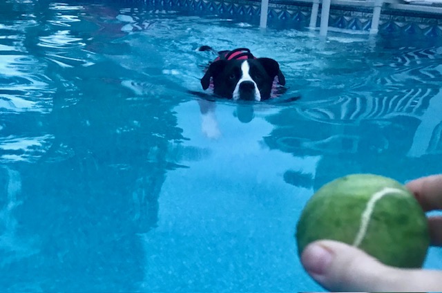 At home, the swimming pool became her stage for pure play. She would lie in the water, eyes fixed on me as I held a ball, patiently waiting for the next toss. When it came, she was all in; body, heart, and attention fully present in that single moment.